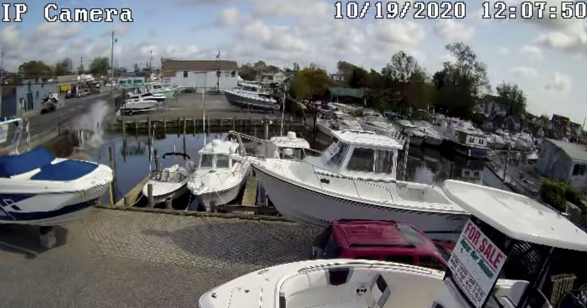 Seven people, including two police officers, jumped into the water in Long Island, New York, to save the couple in a rescue that was captured on security video.