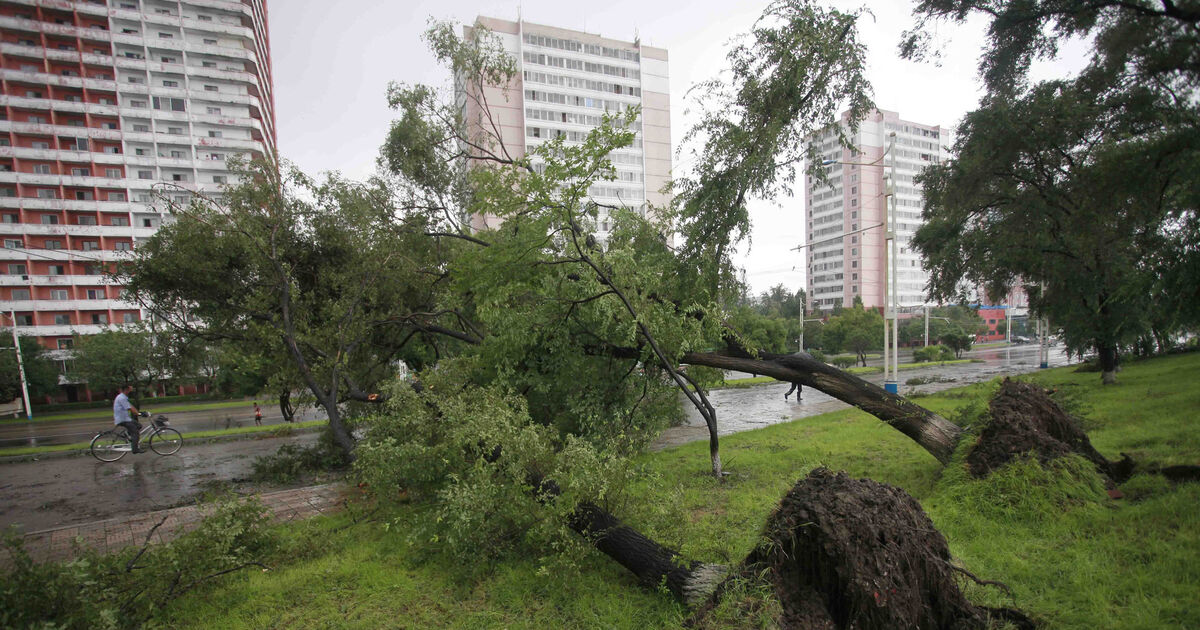 The North’s Korea Central TV showed footage of snapped trees and utility poles and flooded roads. It reported damage to houses and public facilities in North Hwanghae and South Hwanghae provinces, where the typhoon made landfall.