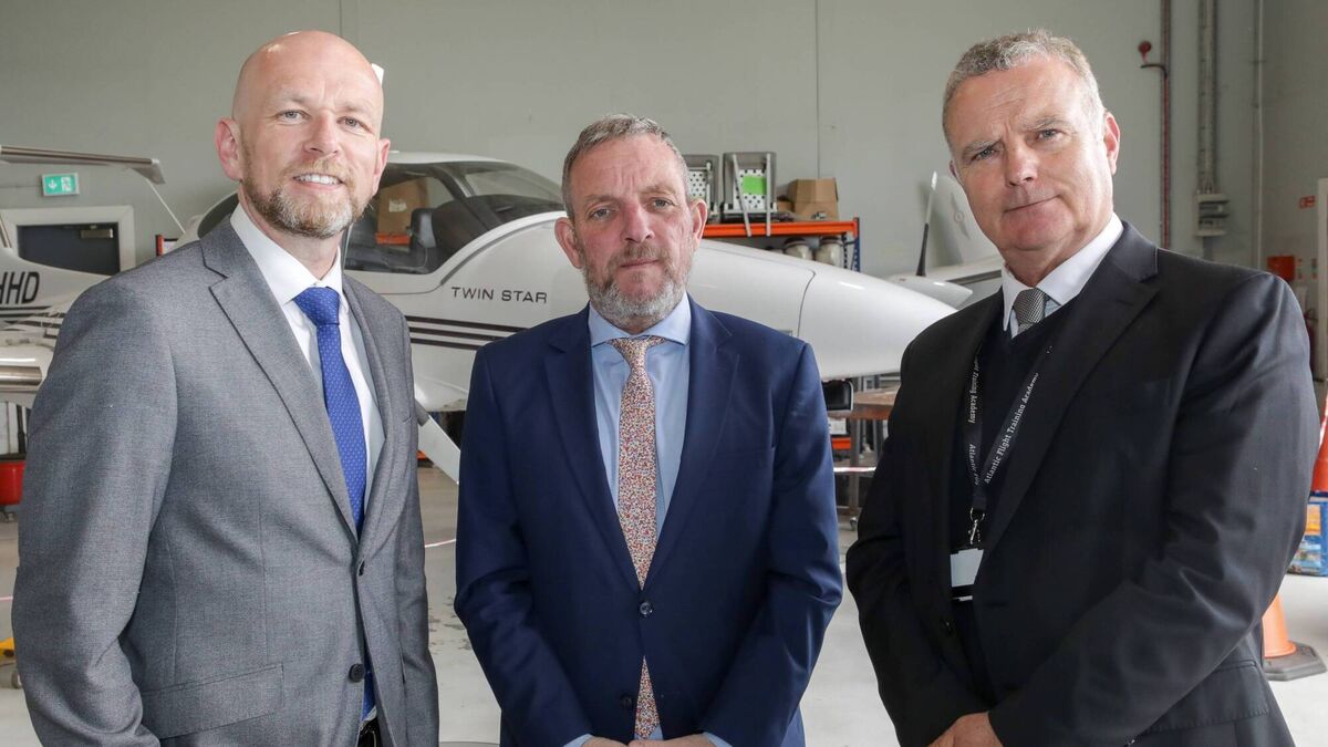 Dr Pio Fenton, MTU, with Minister for State at the Department of Transport Jerry Buttimer and CEO AFTA, Capt. Mark Casey at the launch of an economic impact report on Atlantic Flight Training Academy. Picture: David Creedon
