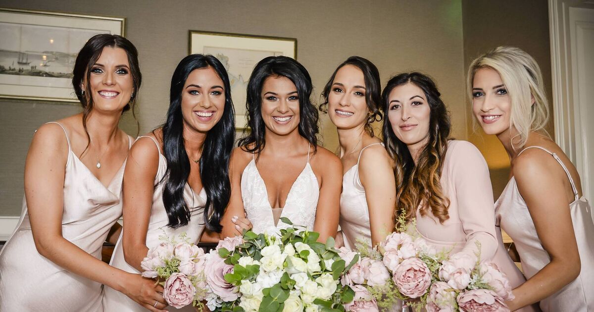 Stephanie McCarthy with her bridal party on her wedding day. Pictures: John Sexton
