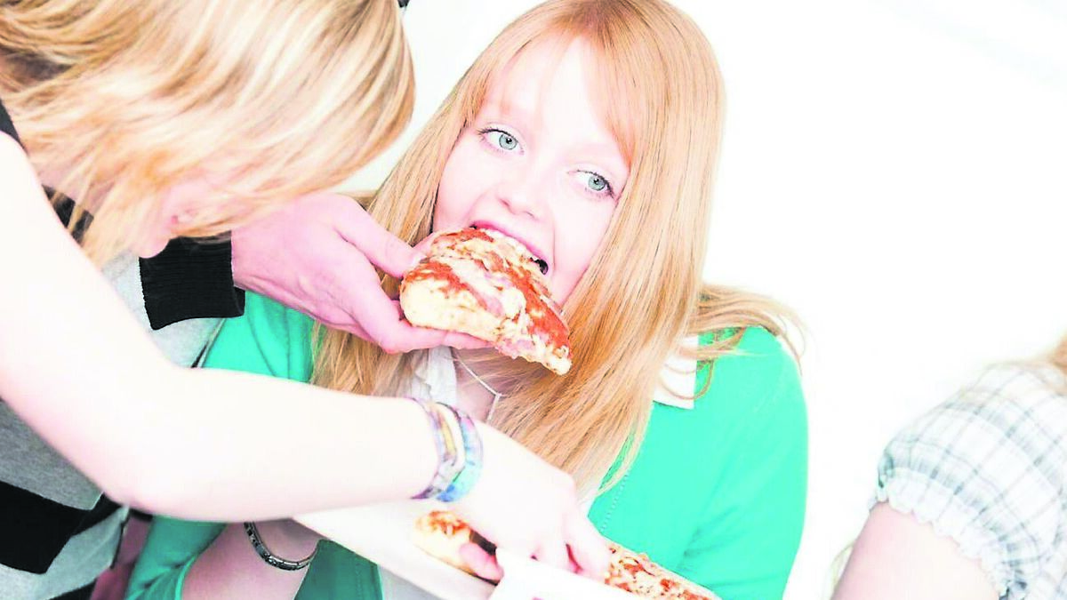 Seán’s mouth was full of a slice of pepperoni but he gave a thumbs up.