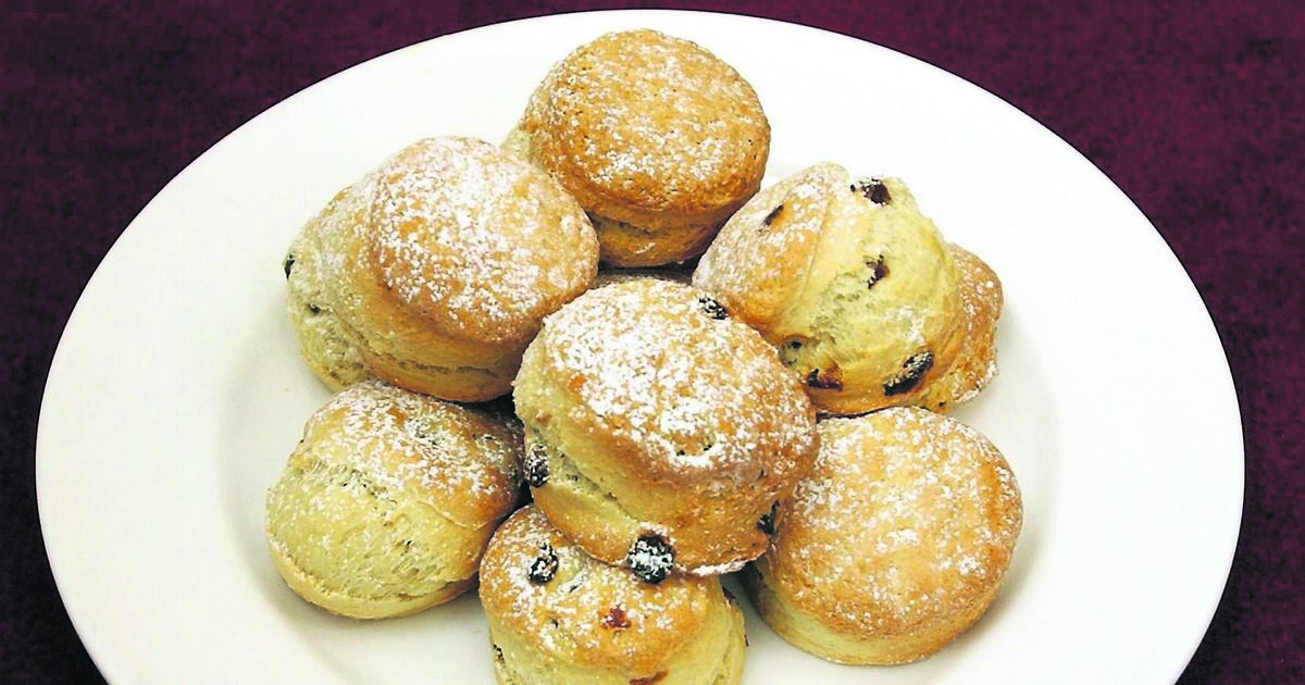 - Use a round scone cutter and press out the scones and place on to greased baking sheets.