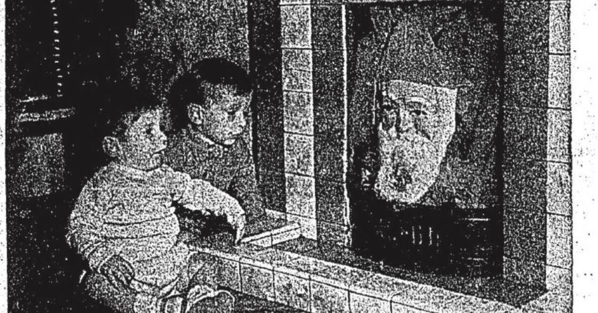Now up to eight pages, and costing twopence, the edition featured another cute shot of boys peering into their fireplace.