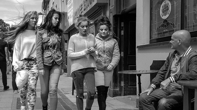 OUT AND ABOUT: Girls walking on North Main Street, by Donncha O’Caoimh, is also part of the exhibition.
