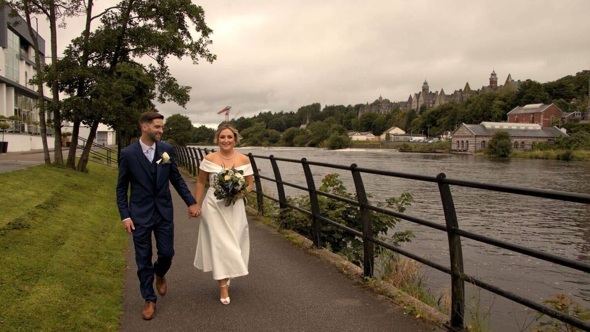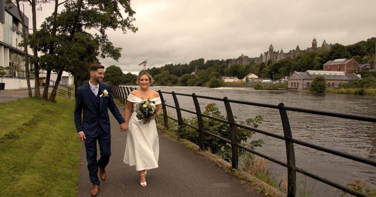 ENJOYING THEIR SPECIAL DAY: The couple walking hand in hand along the river side, near The Kingsley Hotel, Cork city.