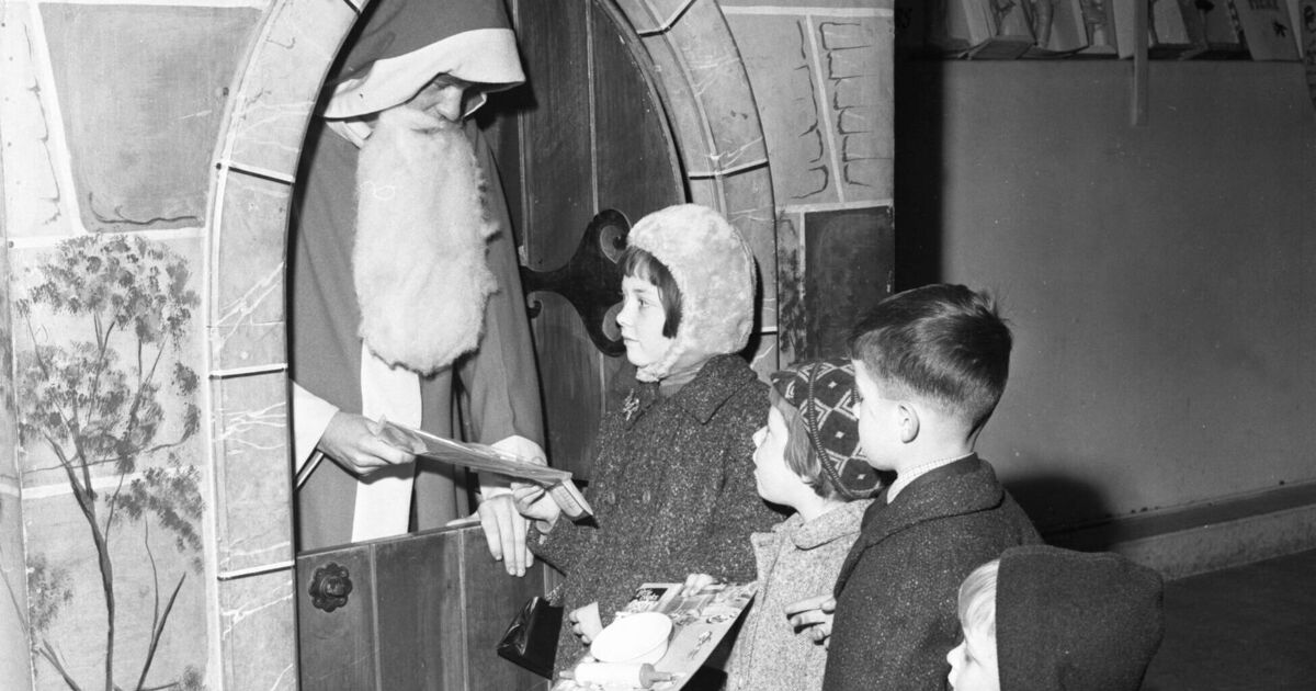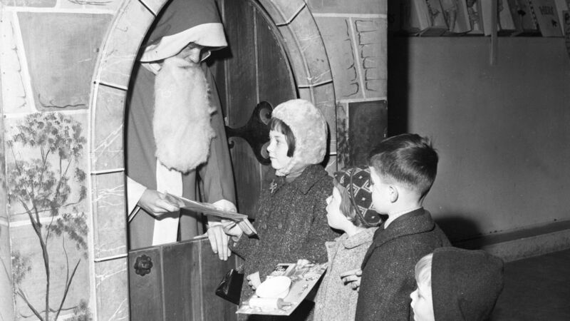 Nora, Margaret Dan and Pat White, Summerhill, Cork queue to meet Santa and receive presents at the Munster Arcade. Picture: Archive