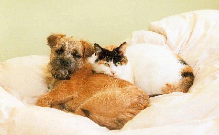 “They’ve known one another most of their lives and often enjoy sunbathing together. He’s grand generally around cats unless they make a run for it, then his instinct for chasing takes over.”