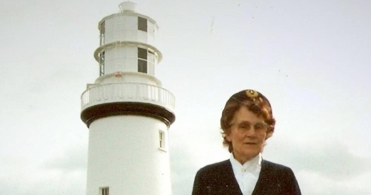 Pauline Butler in uniform at Galley Head Lighthouse, which she ran