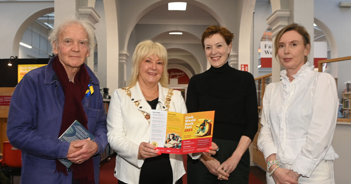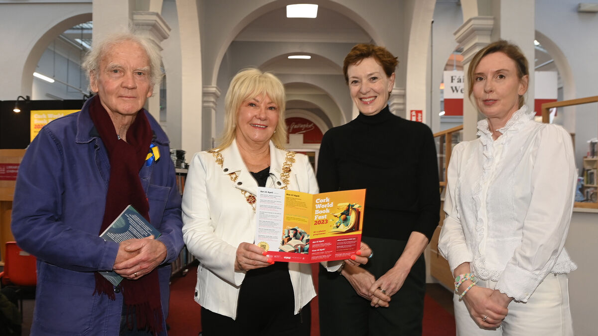 Lord Mayor Cllr Deirdre Forde, former Frank O’Connor short story prize winners David Constantine and Carys Davies, and Sarah Harte, book columnist, at the launch of the 19th Cork World Book Festival at the City Library. Picture; Eddie O'Hare