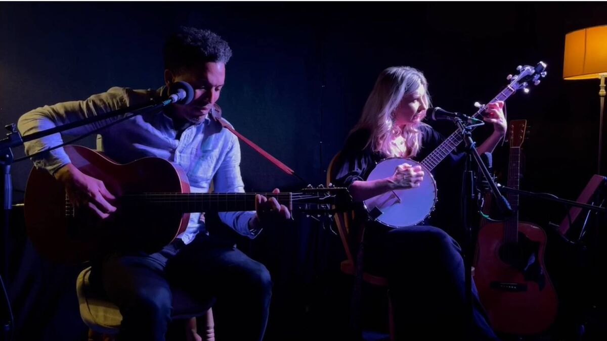 Kiera O'Brien performing with Carlos Paz.