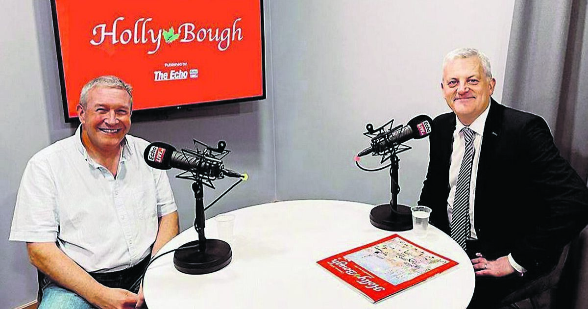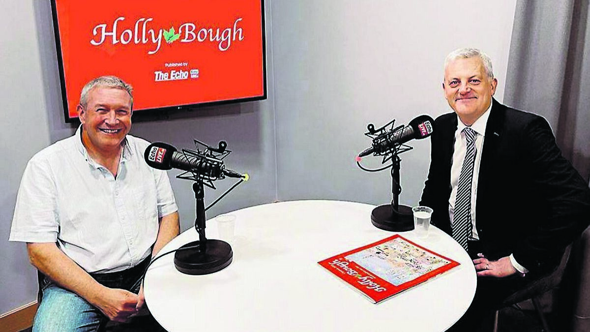 Folklorist Shane Lehane (left) recording a podcast with Holly Bough editor John Dolan, where he talks about his story in the 2023 edition, and about the enduring magic of the annual Christmas publication in Cork.