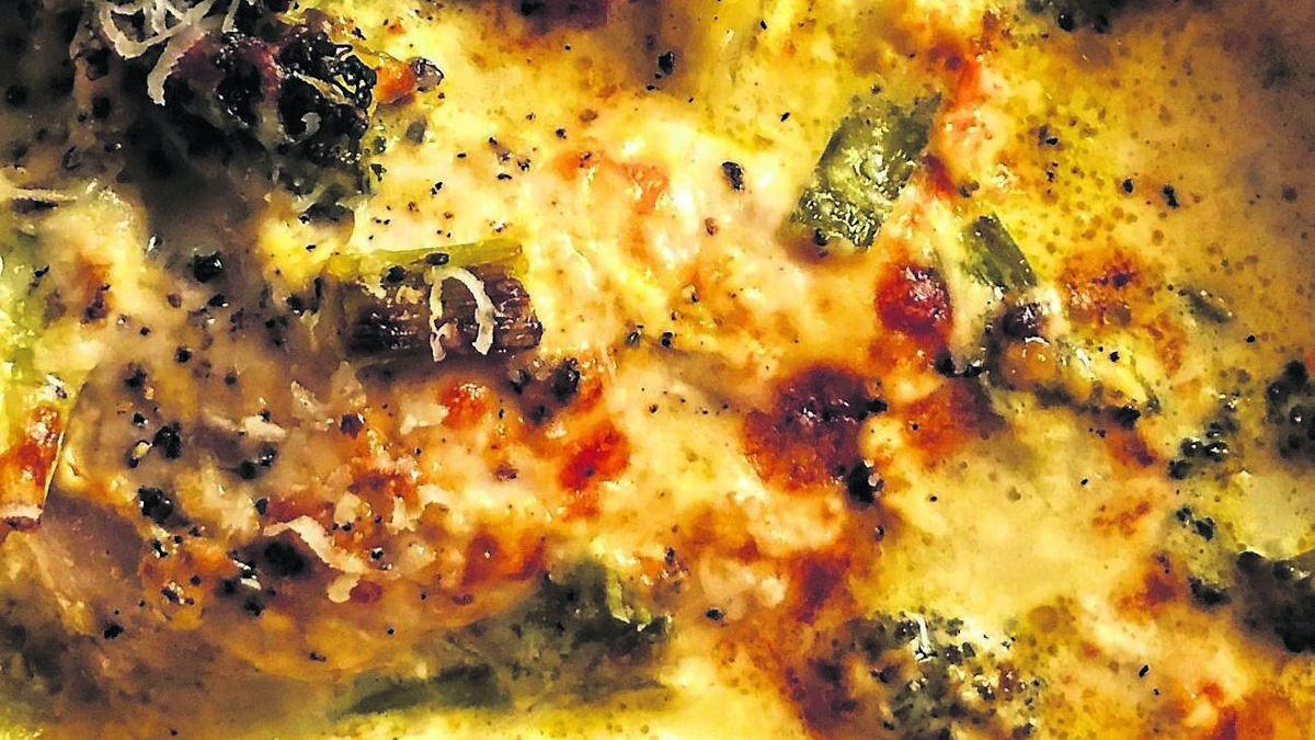 Carefully remove from oven and sprinkle top with grated cheese. Return to oven till top is browned and bubbling.