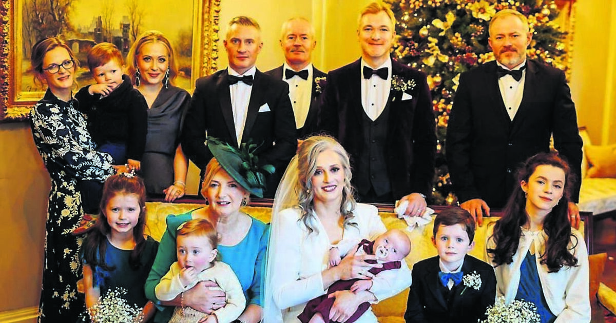Katey Byrd with new husband Gavin, their baby Reggie, and family at their wedding on December 29 in Castlemartyr. “There was never any doubt about what country we’d get married in,” she said