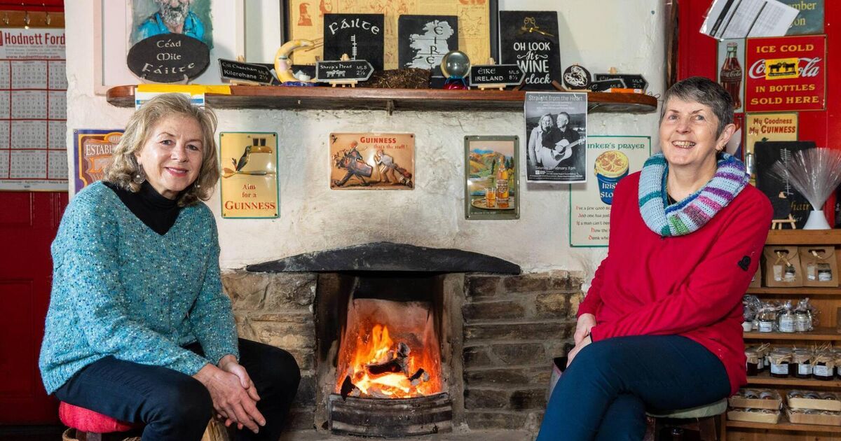 Eileen Lehane and regular Elaine Spillane (left) in Eileen’s Bar. The turf fire is popular among hikers drying off and warming up after a walk. Pictures: Noel Sweeney