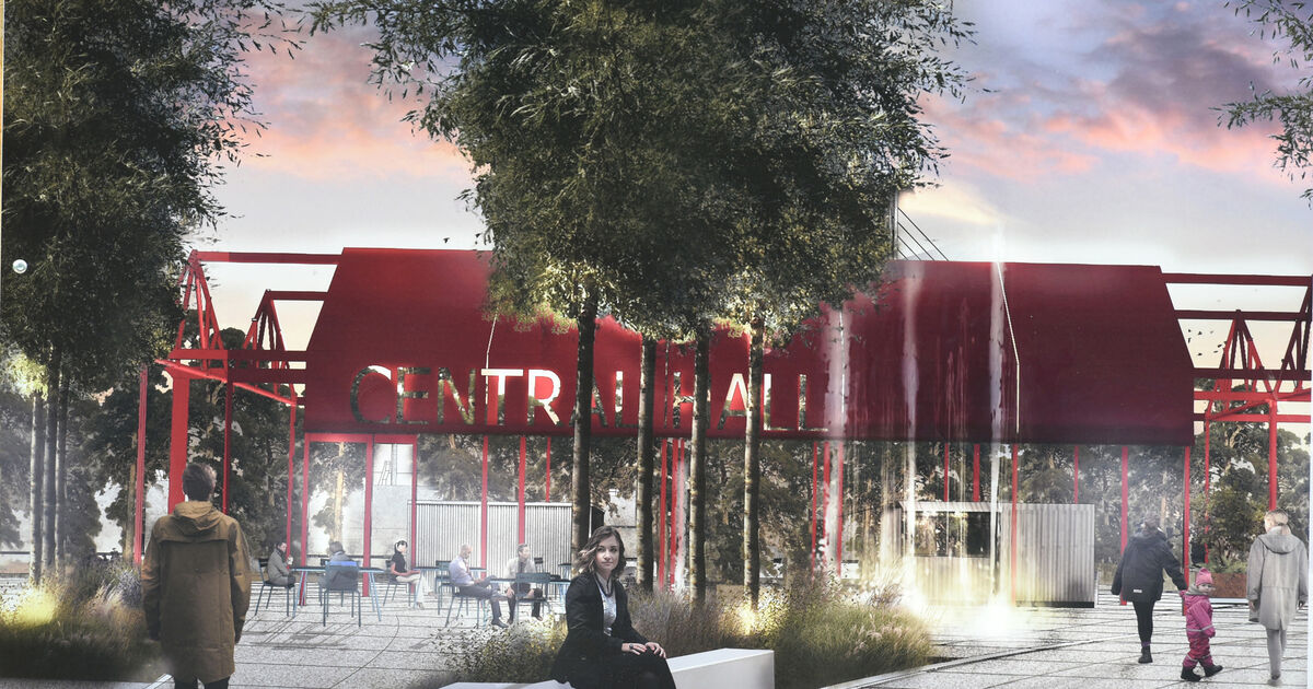 Computer generated image- An artist's impression of the planned Marina Park at Monahan Road, Ballintemple Cork. Signage/ poster on site hoarding on the perimeter of the construction site.