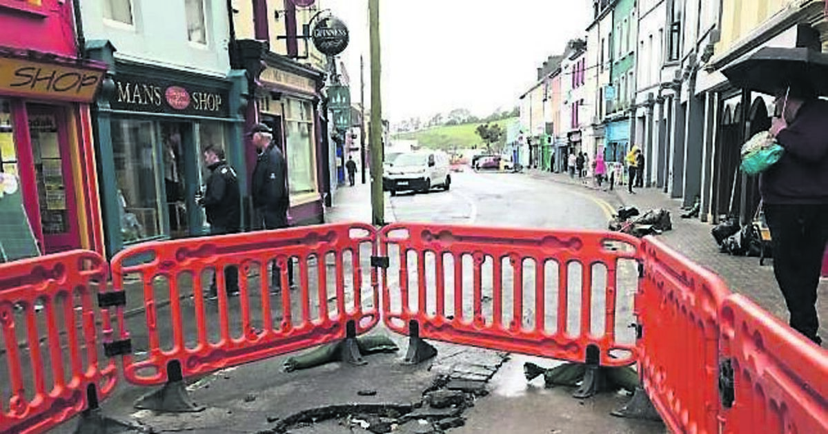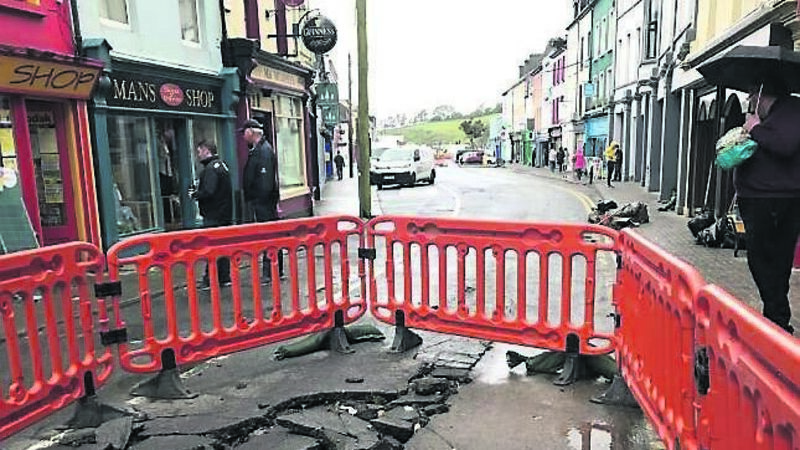 Pictured are repairs taking place on New Street in Bantry, Co. Cork, today after flooding caused by Storm Francis. Photo: Eamonn Farrell/Rollingnews.ie