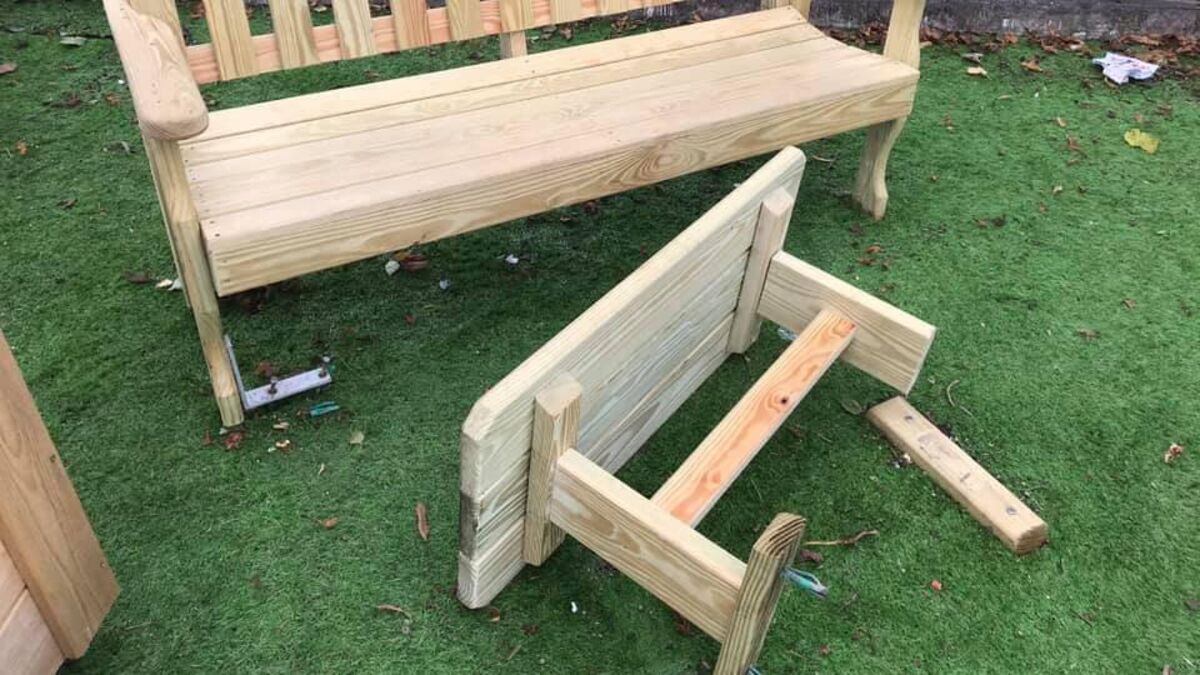 Three tables were broken, along with a large seat which was dislodged from its concrete base. A two-metre planter of flowers had been pushed over.