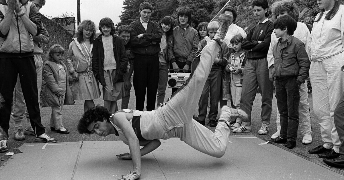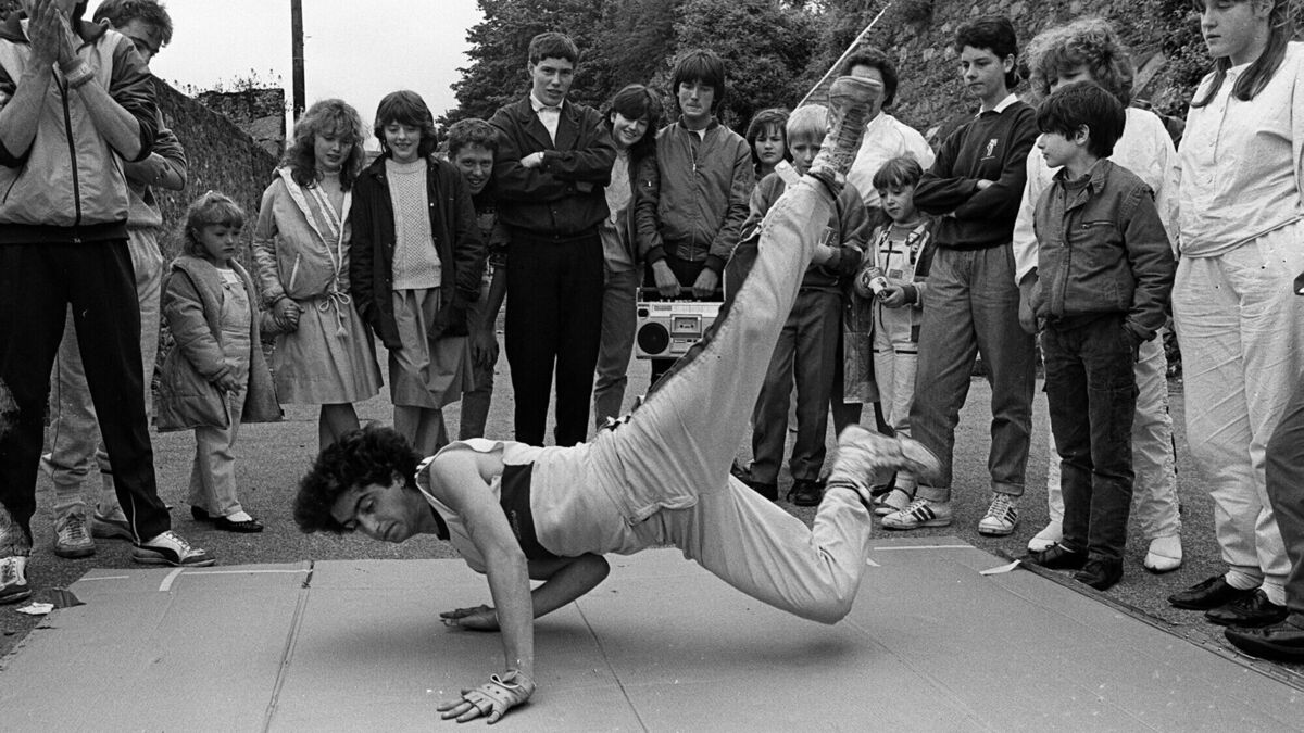 Anthony Crowley, Dillons Cross, giving an exhibition of break dancing to the children of the Lower Road during the Cork 800 Pageant at Grattan Hill, St Lukes.
