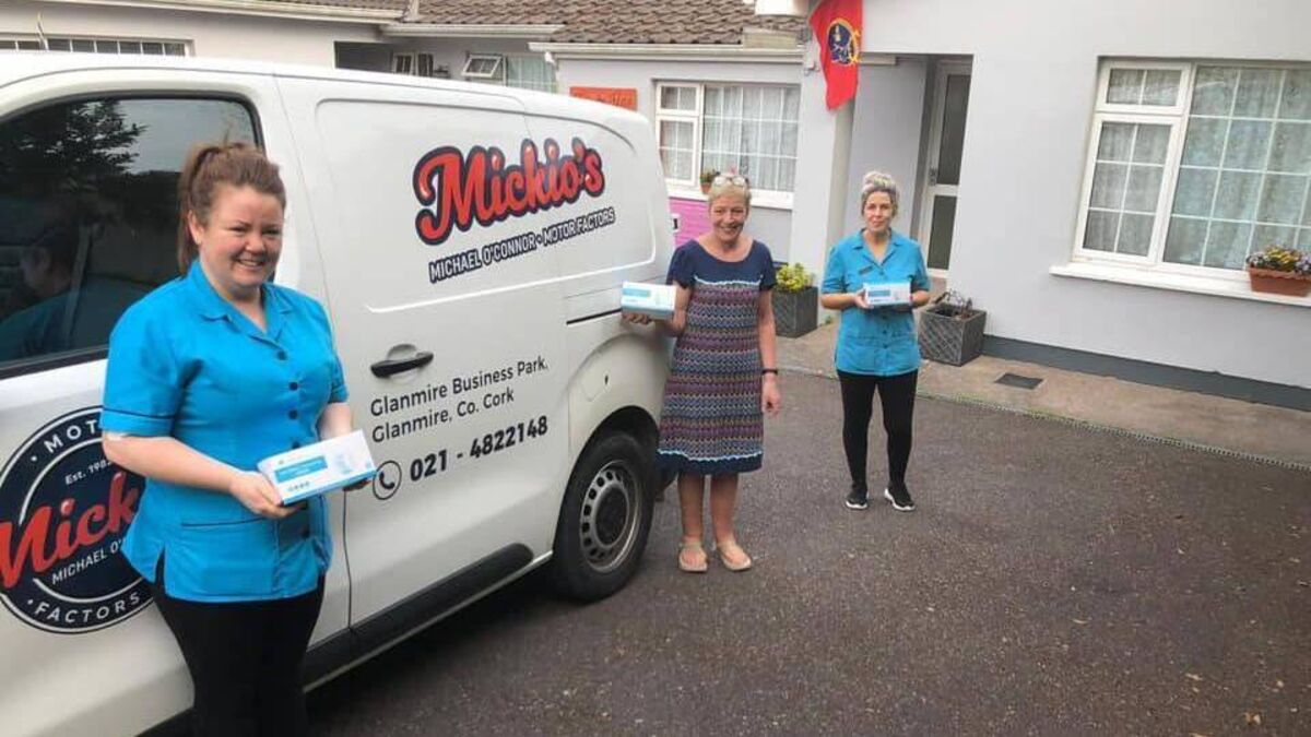 Earlier this week, Michael O’Connor Motor Factors, known as Mickio’s, delivered 450 much-needed face protection masks to St Luke’s Home in Blackrock after the care home’s plea for donations.