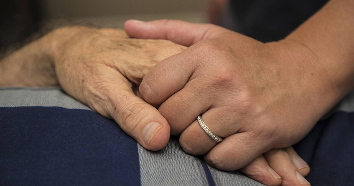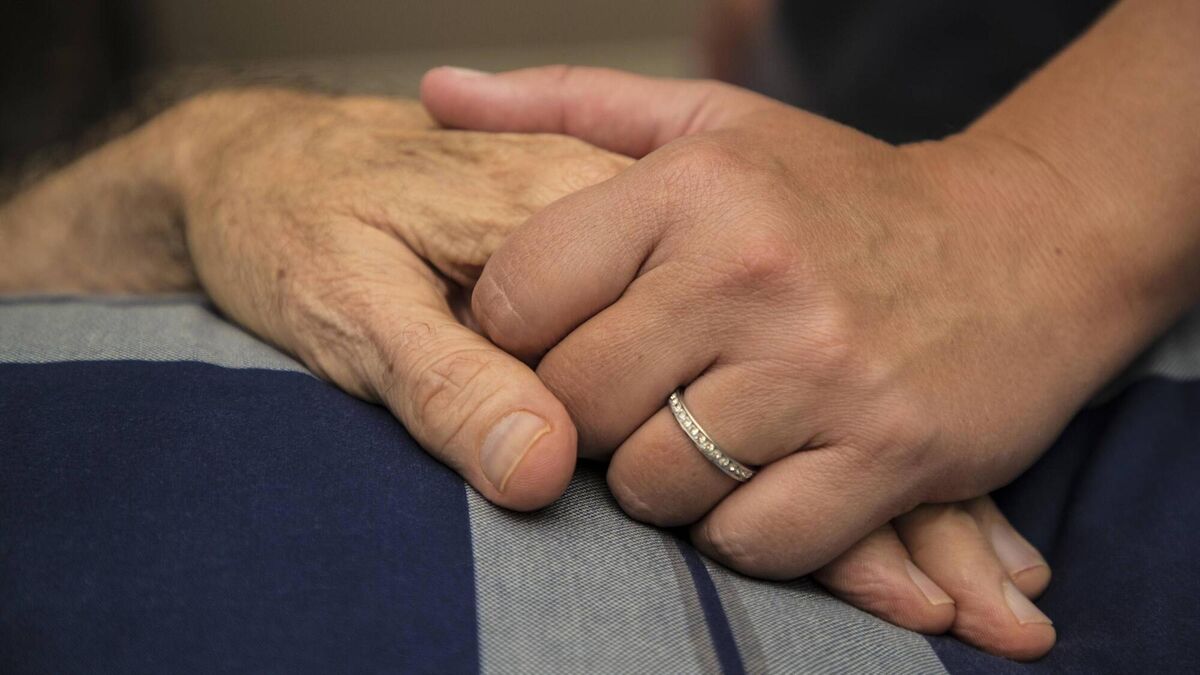 Holding grandmother's hand in the nursing care. Showing all love, empathy, helping and encouragement : healthcare in end of life Proposed day care centre at Cork hospital ‘hugely positive’, TD says