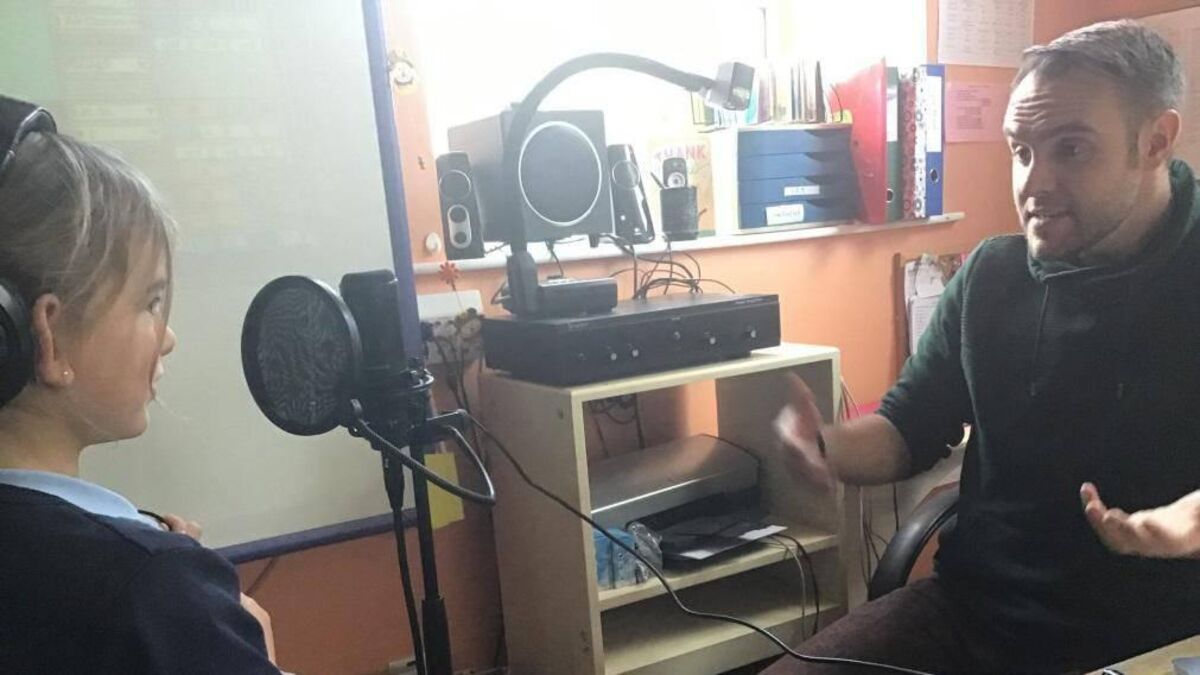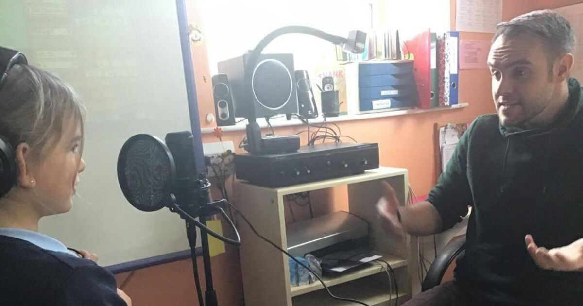 A Cappabue NS pupil recording with music producer Garry McCarthy from GMC Beats at their school in November