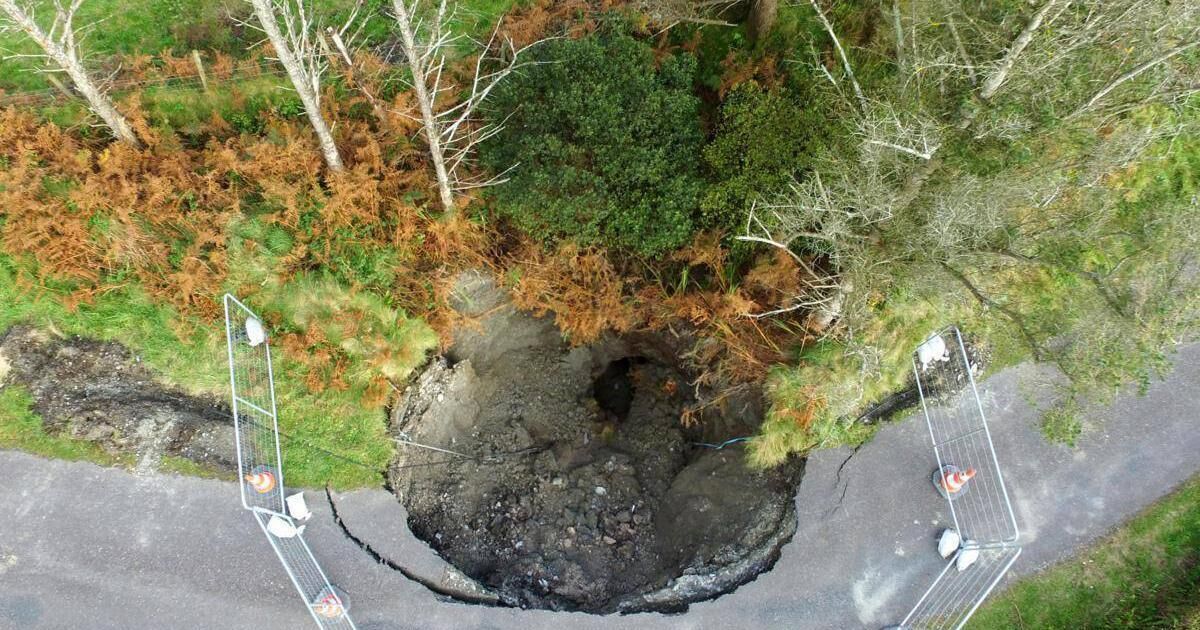 While the road has been closed and barriers have been erected to prevent access to the area, there is the potential that this hole will become further enlarged, given the unknown ground conditions, and therefore Cork County Council urges vigilance and advises that caution should be exercised by all in this area.