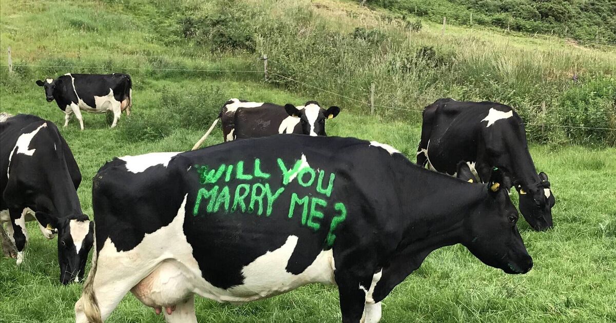 The jet-setting Mayo woman, who spent ten years living in Australia and whose mother recently relocated to Dunmanway, said yes to the West Cork farmer after he painted the million-dollar question on the side of his pet cow ‘Butters’ which she saw as they strolled around the farm in the sunshine last Monday.