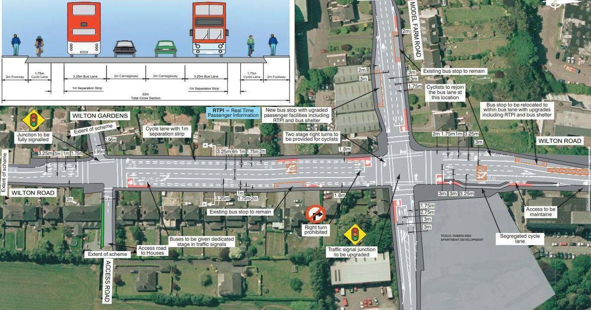 “Contrary to the statement by Cork City Council the study does not recommend six lanes of traffic; the main recommendations on Wilton Road were minor alterations to the bus lane, improvements to footpaths and a toucan crossing at Wilton Gardens without any signalisation.
