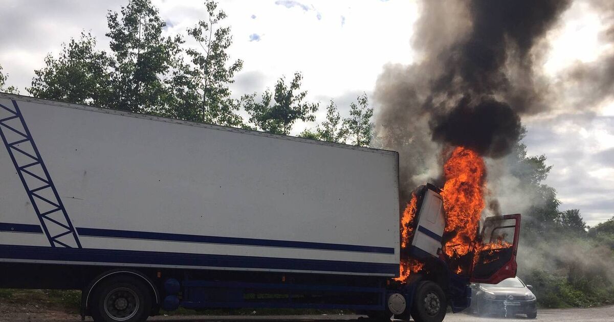 Fire services confirmed there was no one in the truck as the blaze took hold and there are no reported injuries.
