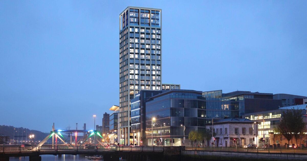 A view of the proposed new 25-storey JCD Group residential development on the Carey’s Tool Hire and former Sextant bar site. Picture: G-Net 3D www.gnet.ie