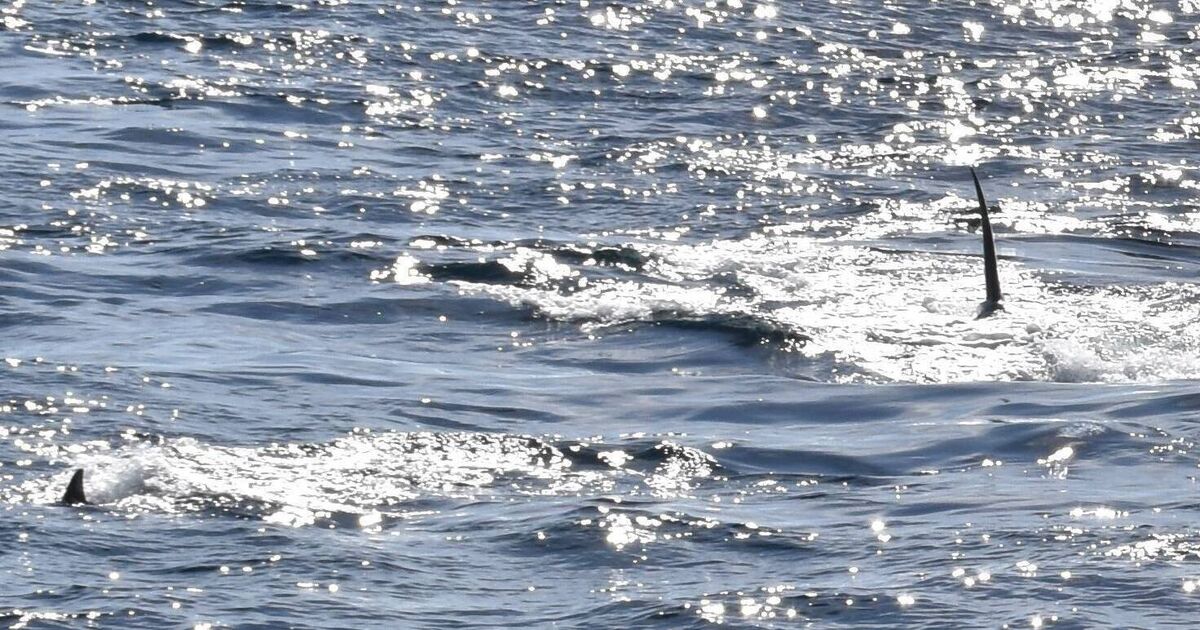 “There are at least three common dolphins visible in the picture and the whale is only two or three metres behind them. It's very likely this a predation event, by the height of the dorsal fin it can only be a killer whale,” he said.