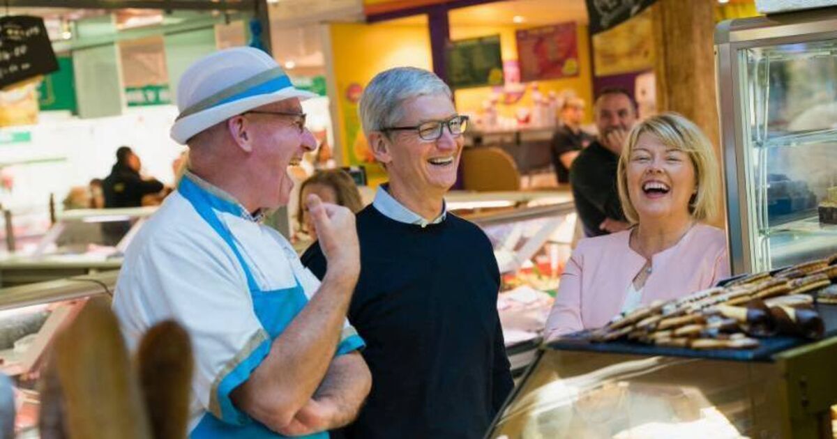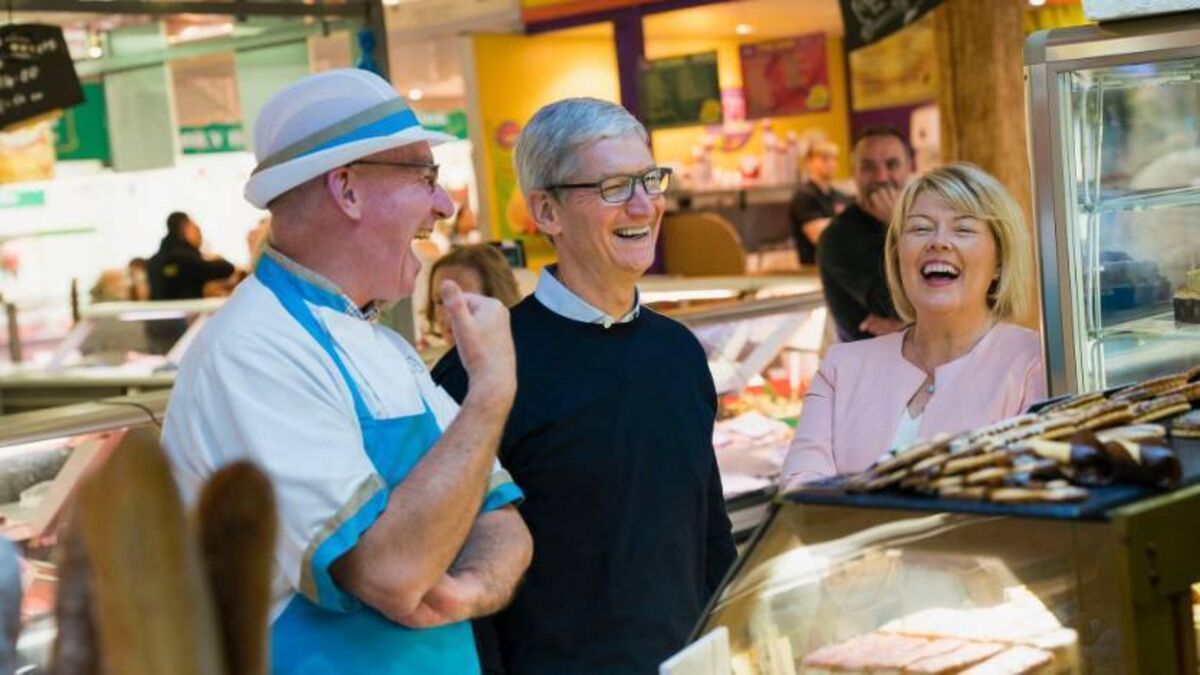 Apple chief executive Tim Cook, the boss of more than 6,000 workers in Cork and 70,000 worldwide, was given a tour of the English Market yesterday by charismatic fishmonger Pat O’Connell.