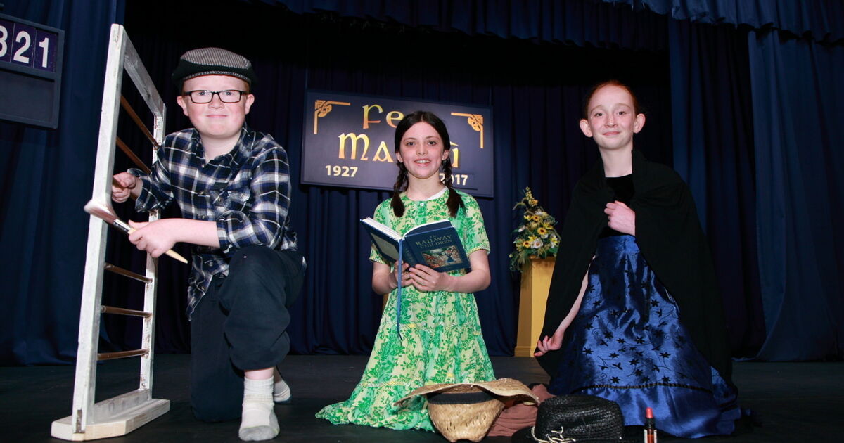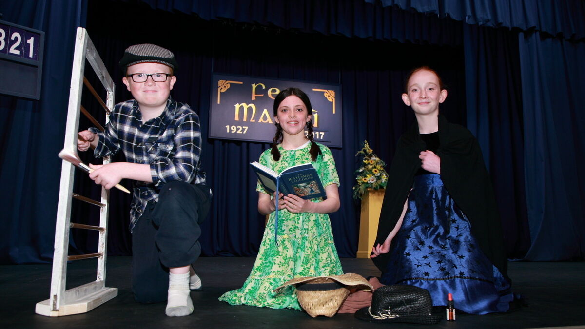 Gavin Nyhan, as Tom Sawyer, and Ellen Culloty and Ella Collins performing ‘Little Women’, at Fr Mathew Hall as part of Feis Maitiú.