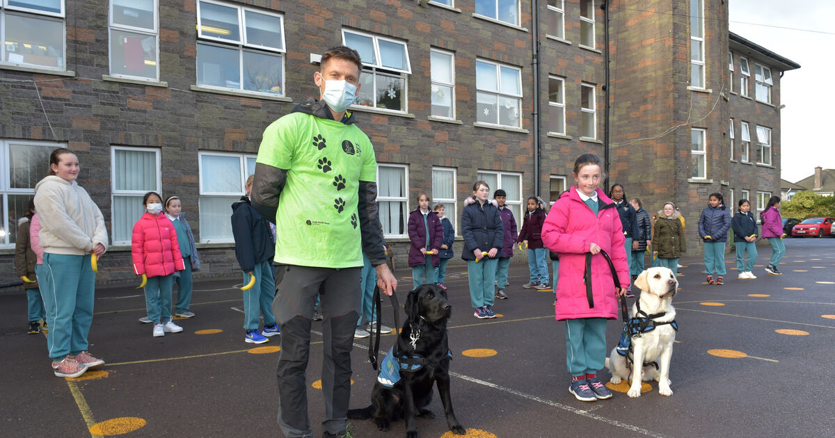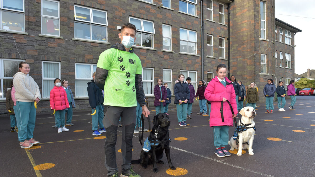 STUDENTS at Scoil an Spioraid Naoimh Cailíní have taken on Cork firefighter Alex O’ Shea’s latest challenge to bring guide dog Rover around the world in 80 days.