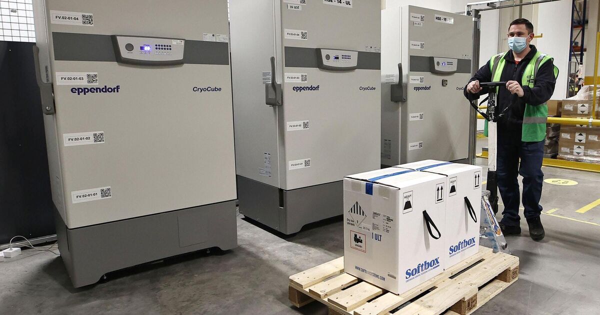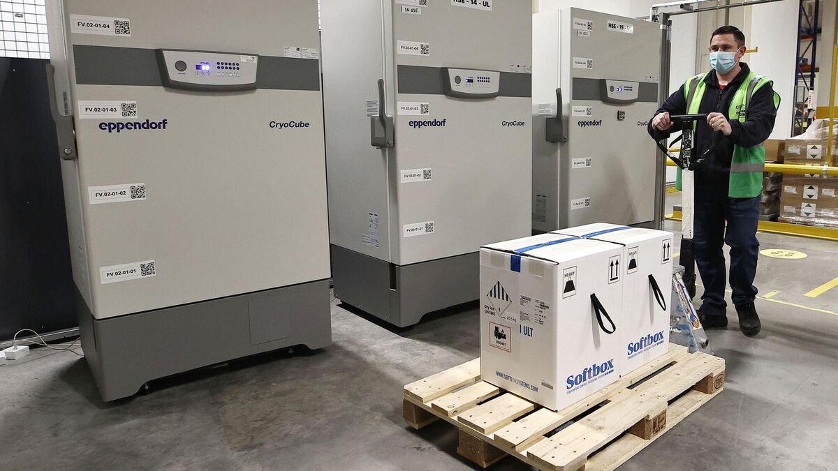 Handout photo taken with permission from the twitter account of Taoiseach Michael Martin @MichealMartinTD showing the first doses of the Pfizer/BioNTech vaccine arriving in the Republic of Ireland.