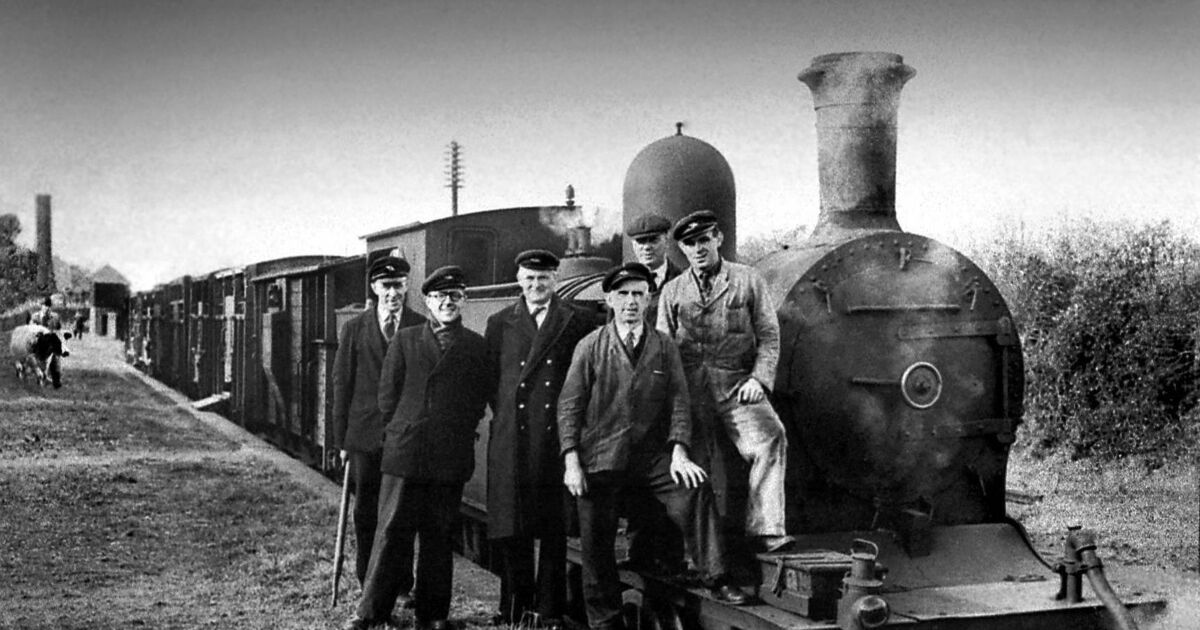 CIE railwaymen pictured with the last livestock train to leave Macroom station in November, 1953.