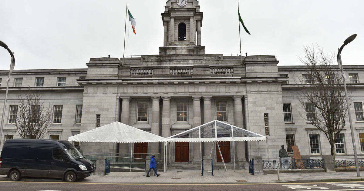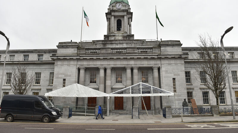 Marquees outside the City Hall, Cork which has been set up as a mass vaccination clinic. Picture Dan Linehan