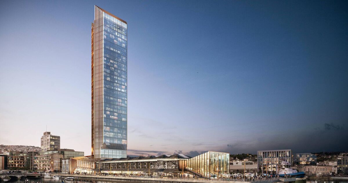 The 34-storey skyscraper hotel that would reach approximately 140m in height will be built on the Custom House Quay site in the city centre.