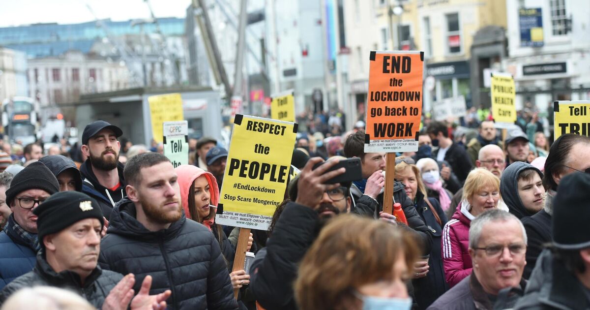 The ‘Parade for Truth’ is taking place at 2pm on Saturday beside the National Monument on Grand Parade where the protesters will march down St Patrick’s Street, to a rally outside Brown Thomas which will be addressed by a number of speakers and musicians, all demanding an end to the lockdown.