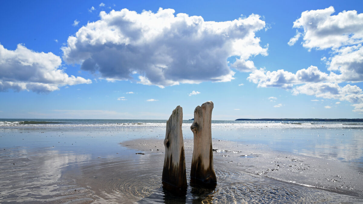 Like a work of art, two pieces of wood on the beach at Claycastle near Youghal. Picture: Denis Minihane.