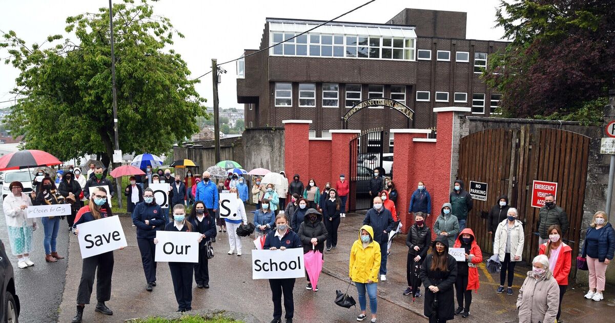 Parents, staff and students standing in unity while socially distanced outside the grounds of St. Vincent's Girls Secondary School, Cork, to protect the all-girls status and the first all-girls ASD unit in Ireland. They were also joined by some public representatives. Picture Denis Minihane.