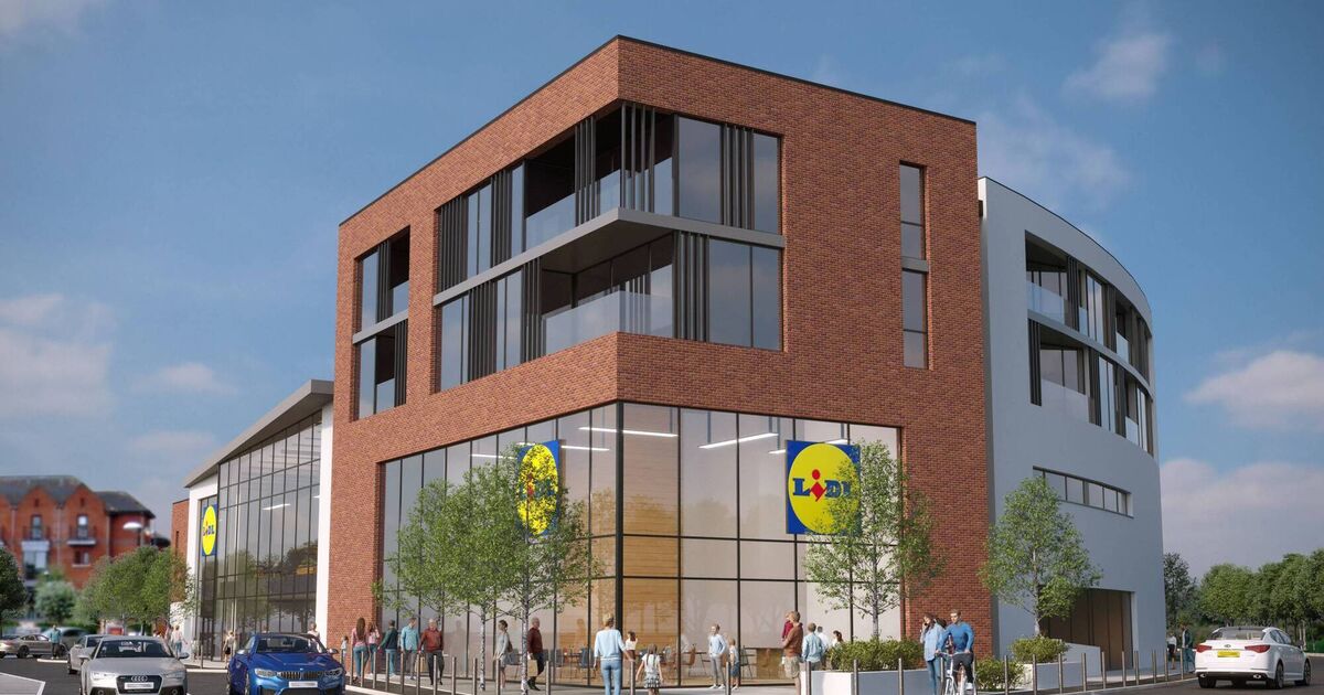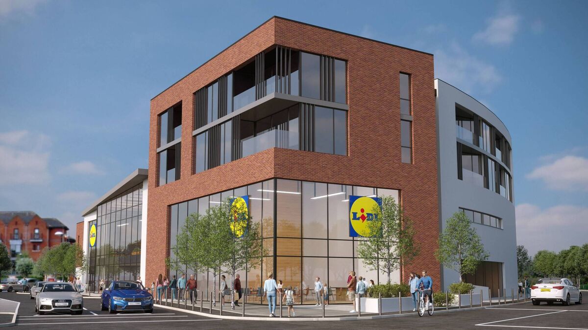 Lidl hope to build a 'landmark building with strong architectural finishes' Alongside the Lidl store, the development would include eight two-bed apartments, a cafe and another commercial unit.