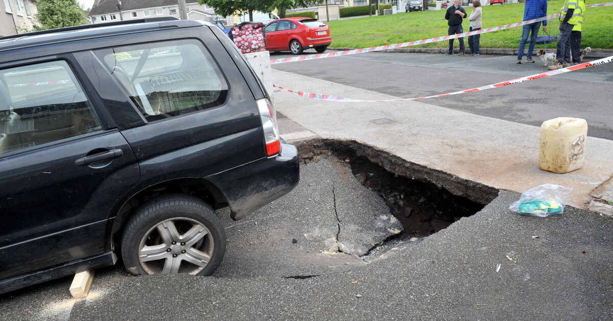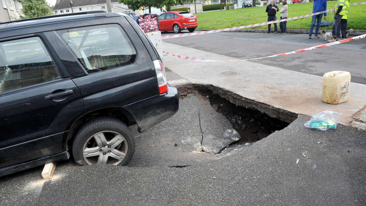 Gary O’Donovan said he spotted water running in the area last evening and contacted Irish Water. The area had dried up and the company was due to return to the site tomorrow to examine the area. However, Mr O’Donovan said when he looked out onto his driveway this morning, he saw the sinkhole. The family’s car remains on the drive this evening, after being almost swallowed by the sinkhole.