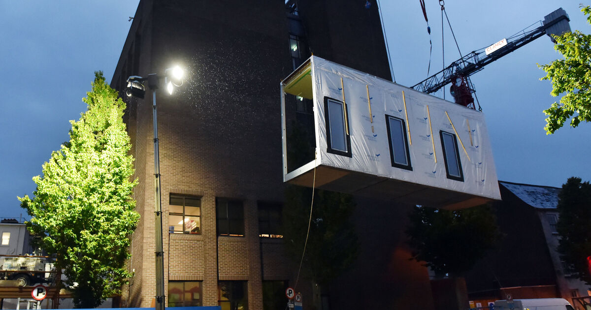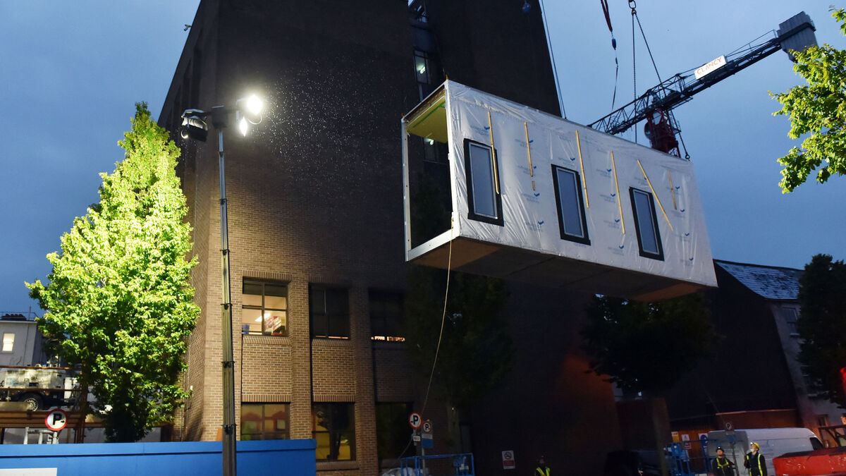 Prebuilt modulars are delivered and lifted into position to the Mercy University hospital on Sheares street Cork Picture: Eddie O'Hare