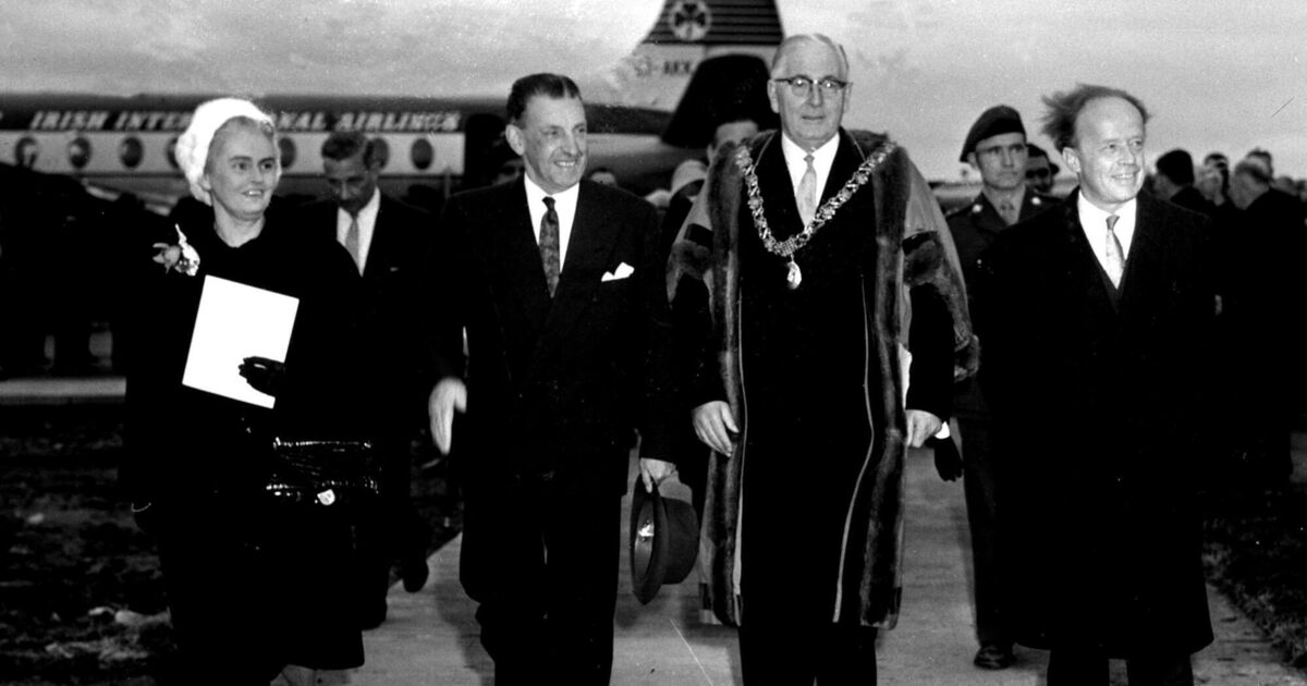 Official opening of Cork Airport. From left: Kathleen Lemass, Séan Lemass, Lord Mayor of Cork Anthony Barry and Erskine H Childers.