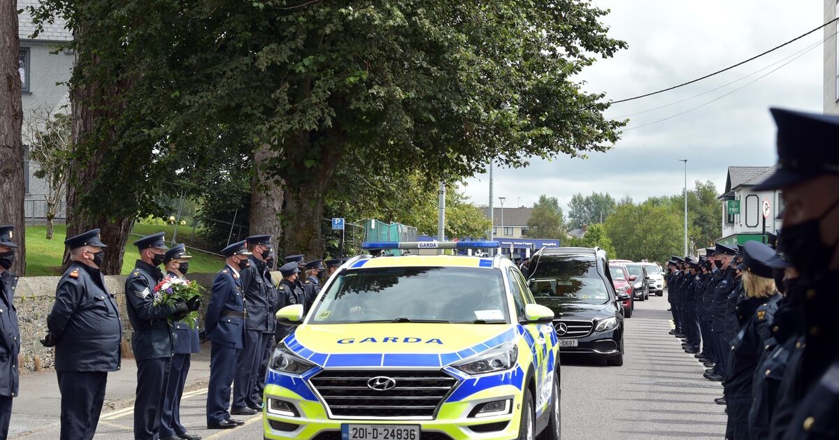 Gardai form a Guard of Honour outside Killarney garda Station on Tuesday to pay tribute to their colleague Paudie Twohig who died of cancer. 200 members of the Garda force, serving and retired, lined the road for a Guard of Honour as the remains of Mr Twohig were driven through the streets of Killarney honouring the 44-year-old Garda who died of cancer.