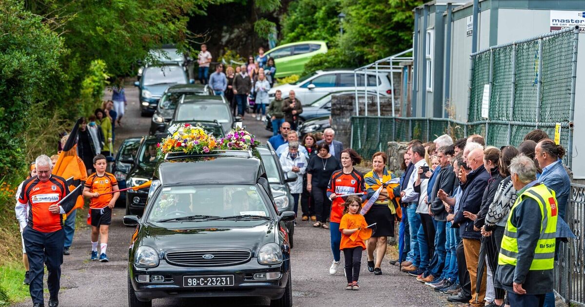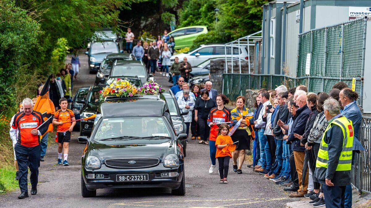 The hearse departed for Kilmacomogue Cemetary as members of St. Colums GAA Club formed a guard of honour. Picture: Andy Gibson.