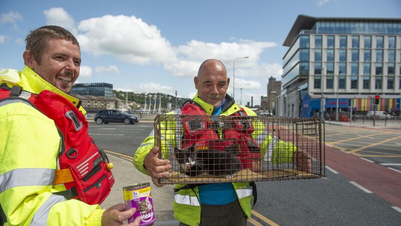 The kitten, called Loki, which had escaped from its owner on the way to the vet on Tuesday afternoon, had ran onto the Albert Quay wharf and climbed along a ledge underneath the Éamon de Valera Bridge, before hiding inside a shaft in the underside of the bridge.