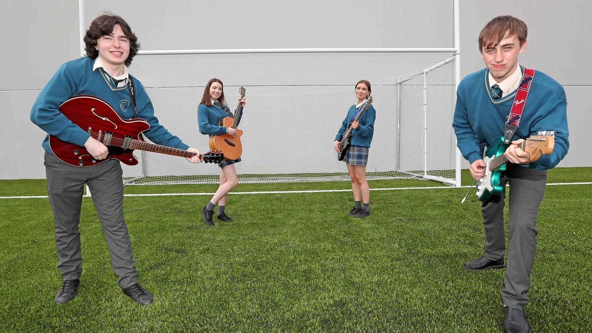 Pictured are, Luke Mehigan, Aisling O'Connell, Zoe Callanan and Kenneth Buckley, all 6th year students who performed, at the Glanmire Community College Official Unveiling of their new state-of-the-art astro turf facility, at Glanmire Community College, Brooklodge, Glanmire, Co. Cork. Picture: Jim Coughlan.
