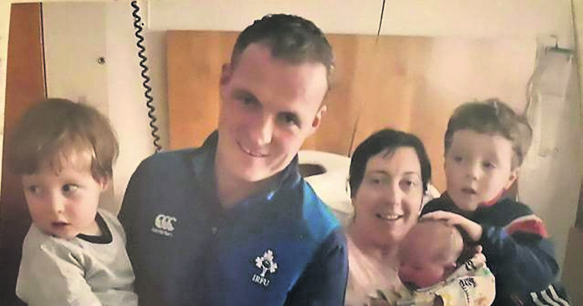 Son Sean Downey on the left, son James on right. Marie is holding baby Darragh with husband Kieran also pictured. This is the only picture of the family together. Picture released by family